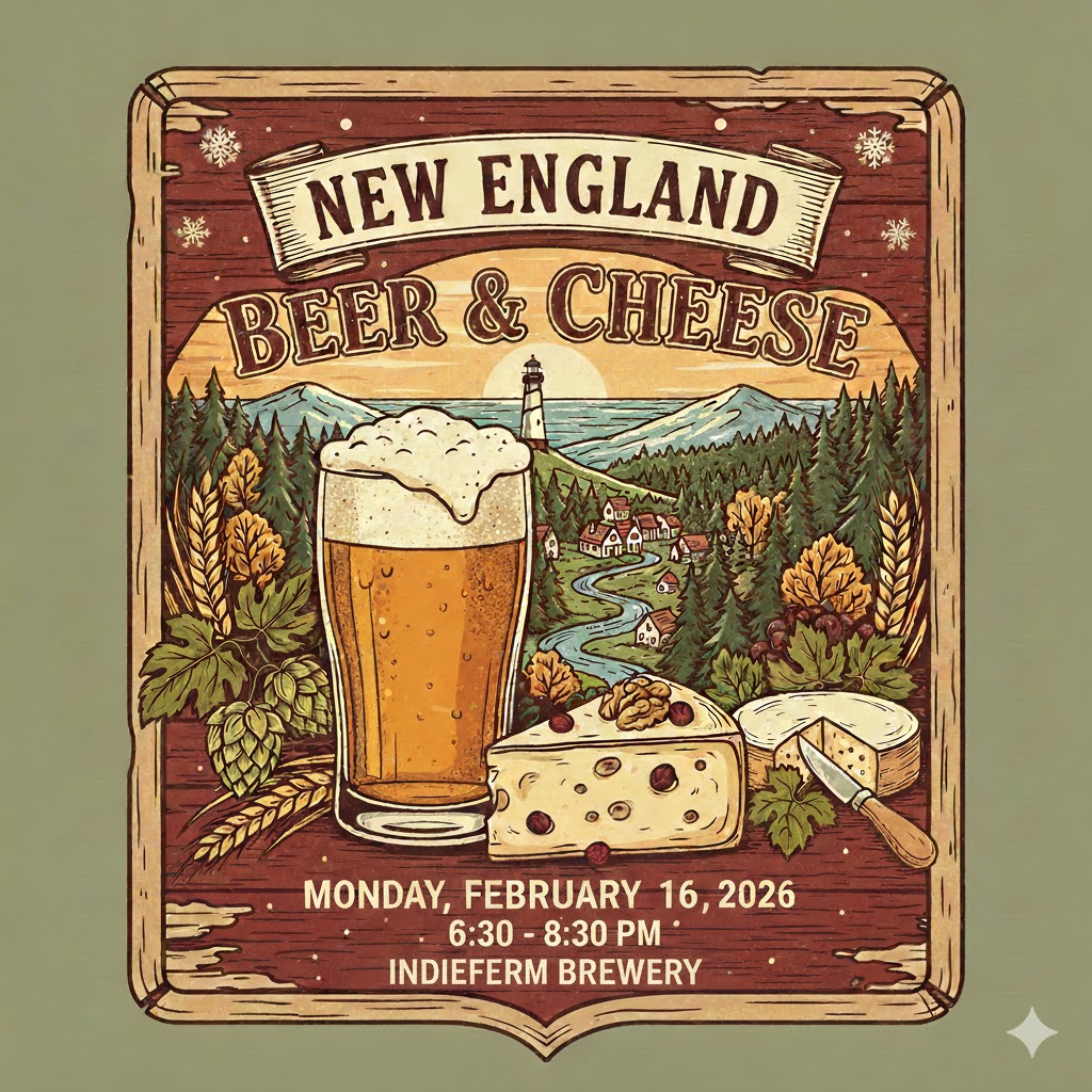 Monday Feb 16, 6:30-8:30 pm. New England Beer & Cheese Pairing. New England makes some of the best cheeses in the entire country. With a history steeped in European culinary traditions, we know our stuff. While many of the cheeses we know and love today come from recipes originating in the Old World, our innovative spirit has taken cheesemaking to new heights, and it’s time for you see just how good we have it. Join cheese nerd Adam Centamore for an evening tasting spectacular cheeses made right here in New England, paired with IndieFerm’s equally awesome beers. It’s a night of cheering on the locals in the tastiest way possible! Tickets are $45 per person and available for purchase on Eventbrite or at the taproom (save on Eventbrite fees). Eventbrite link: http://www.eventbrite.com/e/new-england-beer-cheese-pairing-at-indieferm-tickets-1981862481031