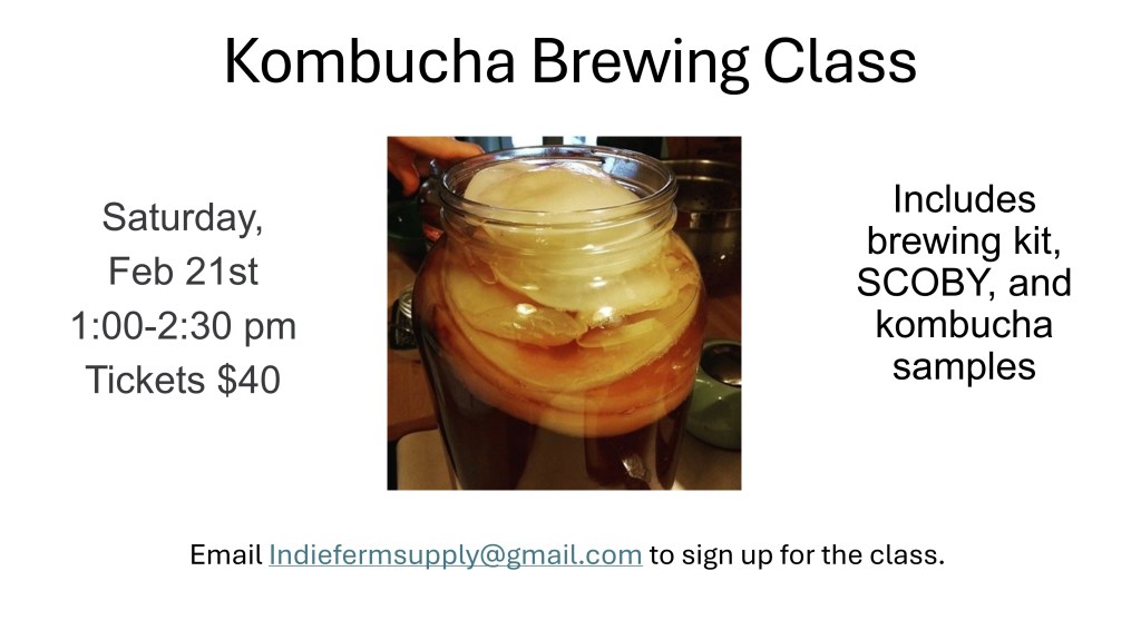 Saturday Feb 21, 1-3 pm. Kombucha Class